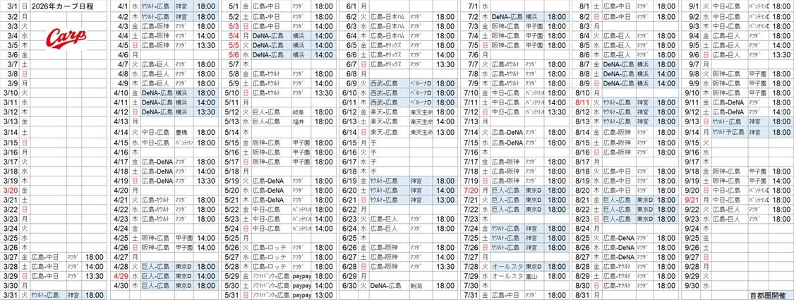 2026シーズンも広島東洋カープに熱いご声援をよろしくお願いします。